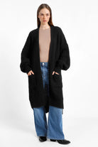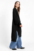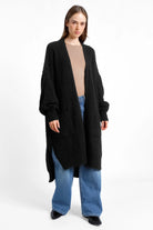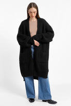 Longcardigan aus Ajour-Strick mit Alpakawolle