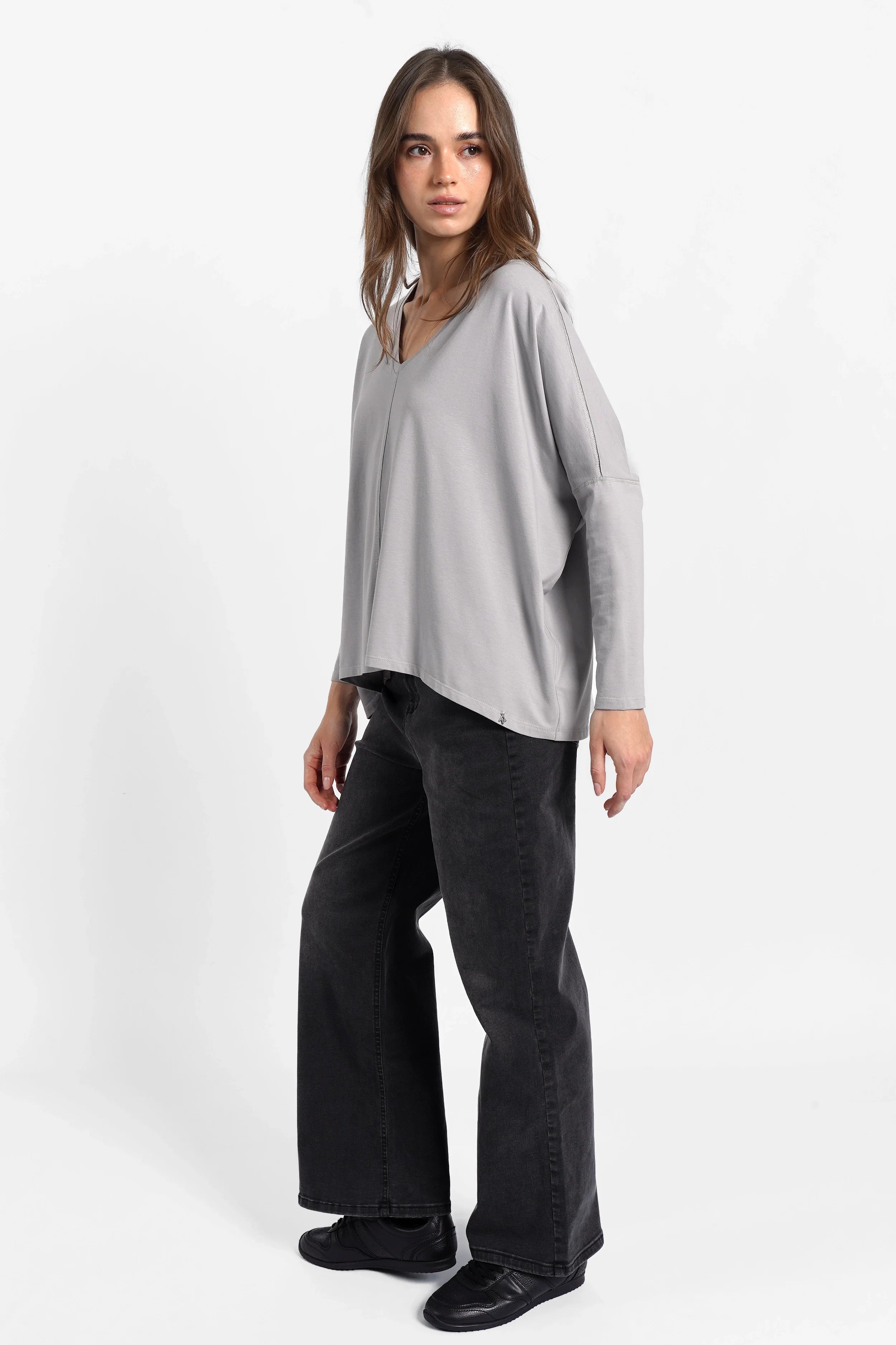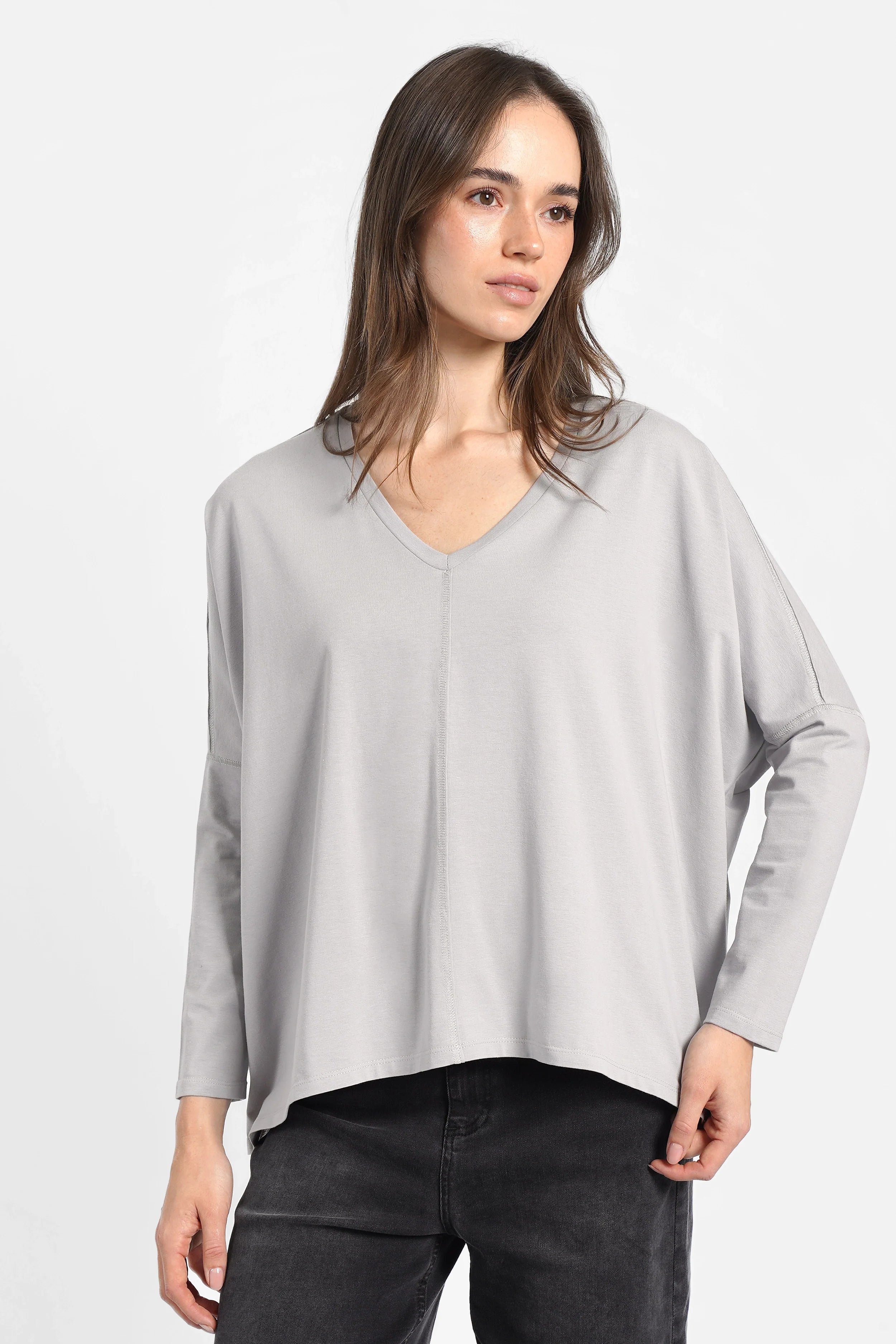 Ein locker fallendes Langarmshirt in Kastenform. Die geschnittenen Kanten und der V-Ausschnitt sorgen für eine Extraportion Coolness. Die hochwertige Baumwolle überzeugt durch tiefe und brillante Farben. Sie besitzt eine hohe Haltbarkeit, hat einen weichen Griff und liegt angenehm auf der Haut.