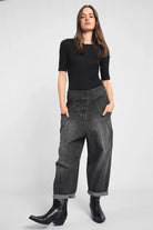 - Lässiger Baggy-Schnitt mit tiefem Schritt
