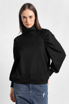 - Breite Bündchen an Ärmeln und Saumabschluss