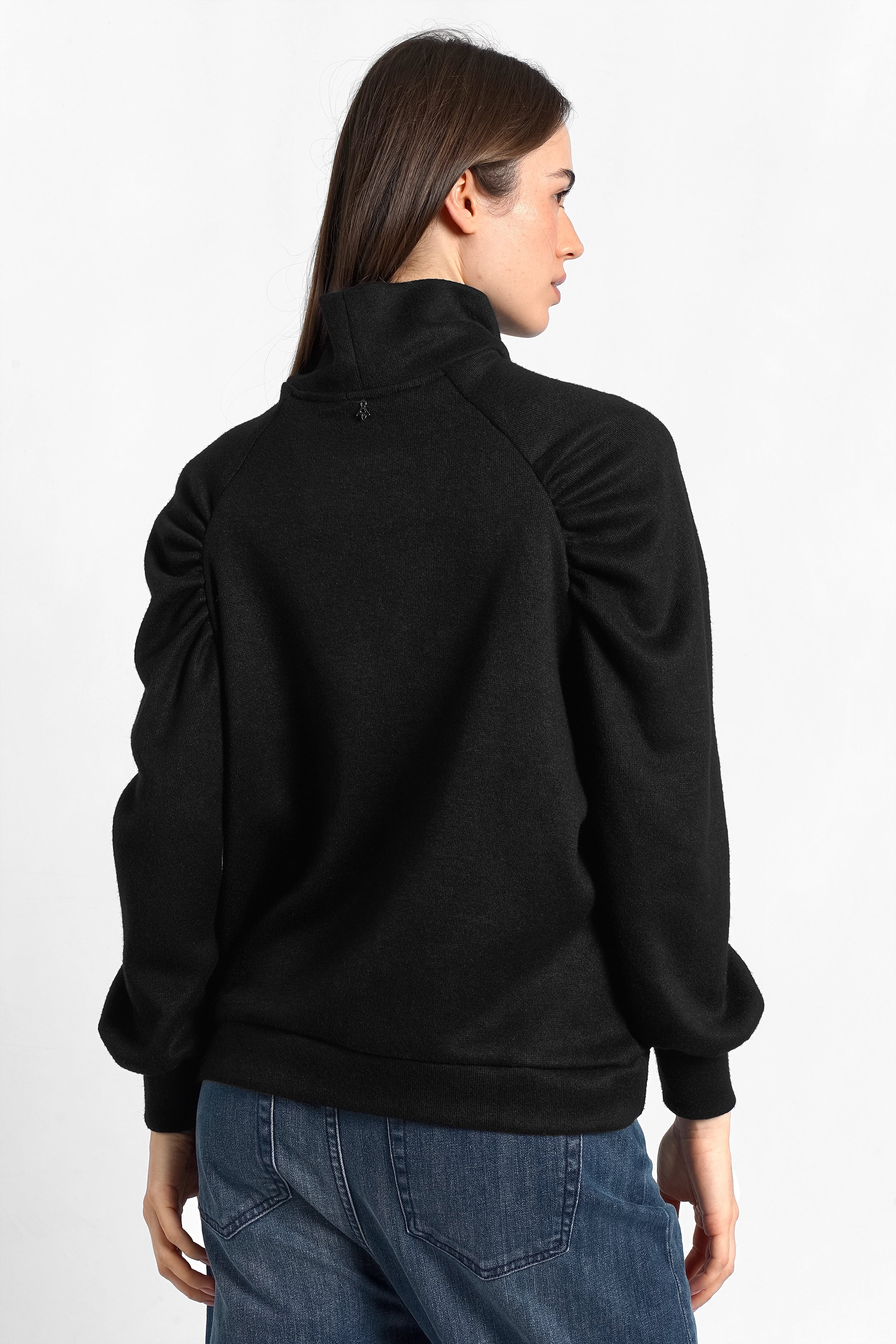 Ein Oberteil aus softem Feinstrick, welcher durch sein außergewöhnlich weiches, flauschiges Material begeistert. Der hohe Stehkragen und die raffinierten Raglanärmel mit leichten Falten setzen dezente, aber besondere Akzente. Breite Bündchen an Ärmeln und Saum runden den entspannten Regular Fit ab.