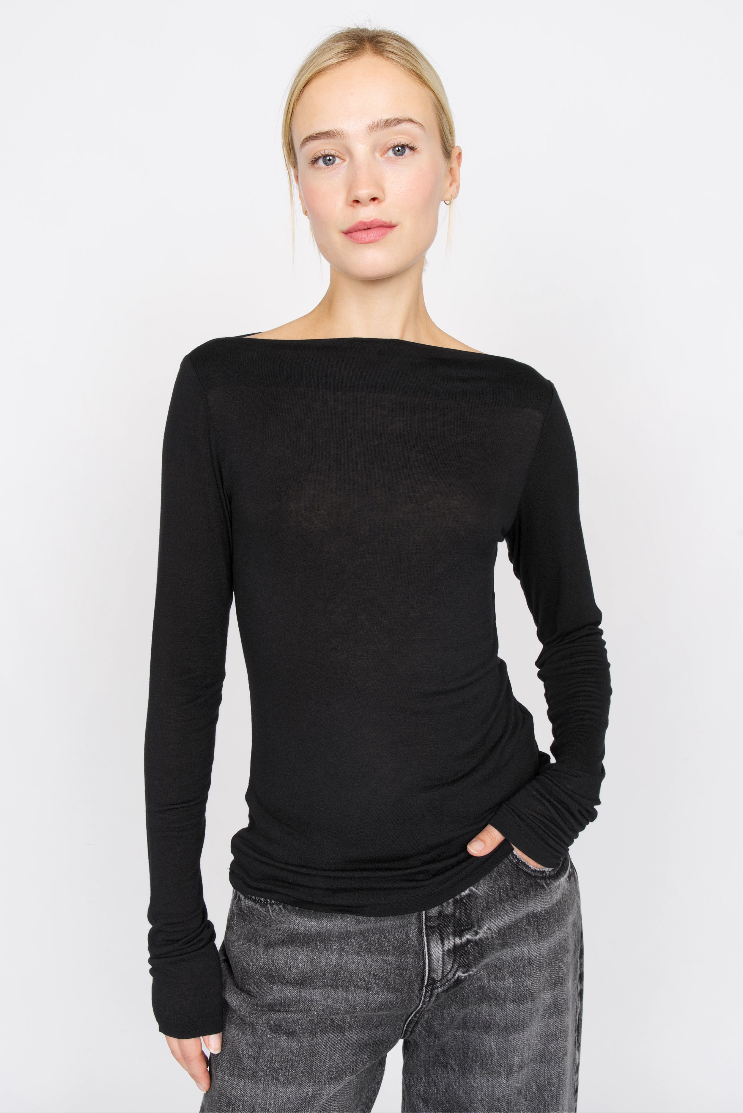 Langarmshirt aus softer Viskosemischung mit Kaschmir. Mit U-Bootausschnitt und schmaler Passform – weich im Griff, angenehm zu tragen und dezent semitransparent.