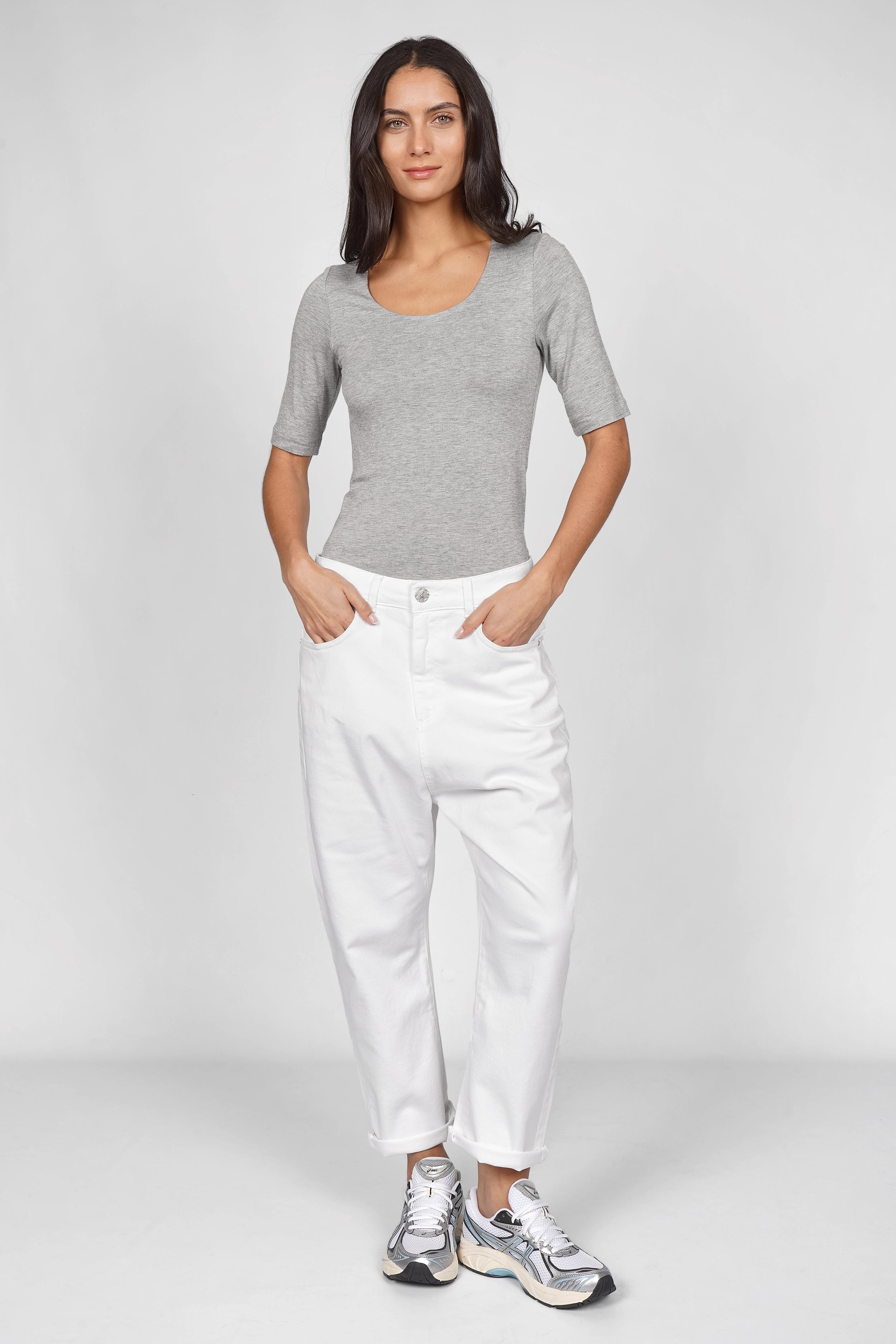 - Boyfriend-inspirierter Look, tiefer tragbar und leicht krempelbar