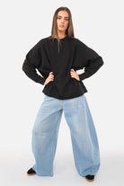 Sweat décontracté à silhouette droite et relax, légère ligne A et épaules tombantes – pour un look facile, un peu plus affirmé. Le tissu est doux sur la peau, léger à porter et subtilement rehaussé d’un logo brodé ton sur ton. Les manches se terminent par un poignet étroit et rallongé qui donne de la structure au tombé ample.