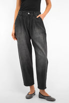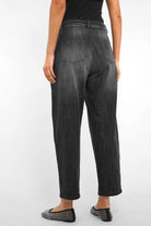 - Plis discrets à la taille, entrejambe légèrement plus bas