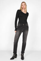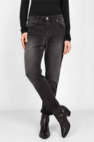 Eine Boyfriend-Jeans in Faded Black Waschung. Locker geschnitten mit leicht zulaufendem Bein. Weicher Denim mit Stretchanteil für mehr Beweglichkeit. Du kannst sie sowohl lässig hochkrempeln oder entspannt lang tragen.