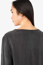 - Rundhalsausschnitt mit feinen Falten