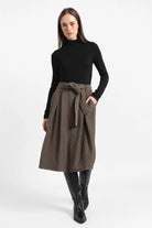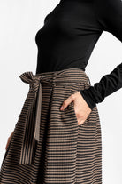 Der LAVIEE Rock zeigt ein klassisches Hahnentrittmuster in modernem Schnitt. Bundfalten vorn und ein elastischer Bund hinten bringen Struktur und Komfort. Ein Bindegürtel betont die Taille, seitliche Eingriffstaschen machen ihn praktisch. Der ausgestellte Schnitt in A-Linie sorgt für eine leichte Weite beim Tragen.