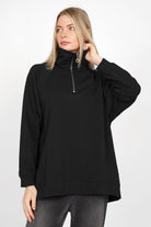 Ein modernes Key Piece: lässig, weich, modern. Der Sweater mit leichter A-Linie und längerem Rückteil sorgt für eine entspannte, fließende Silhouette. Der Stoff liegt angenehm auf der Haut, ist leicht zu tragen und dezent mit einer tonalen Logo-Stickerei veredelt. Die Raglanärmel gehen weich in die Schulter über und betonen den natürlichen Fall. Der halbe Metallzipper verleiht dem Design eine sportive Note.