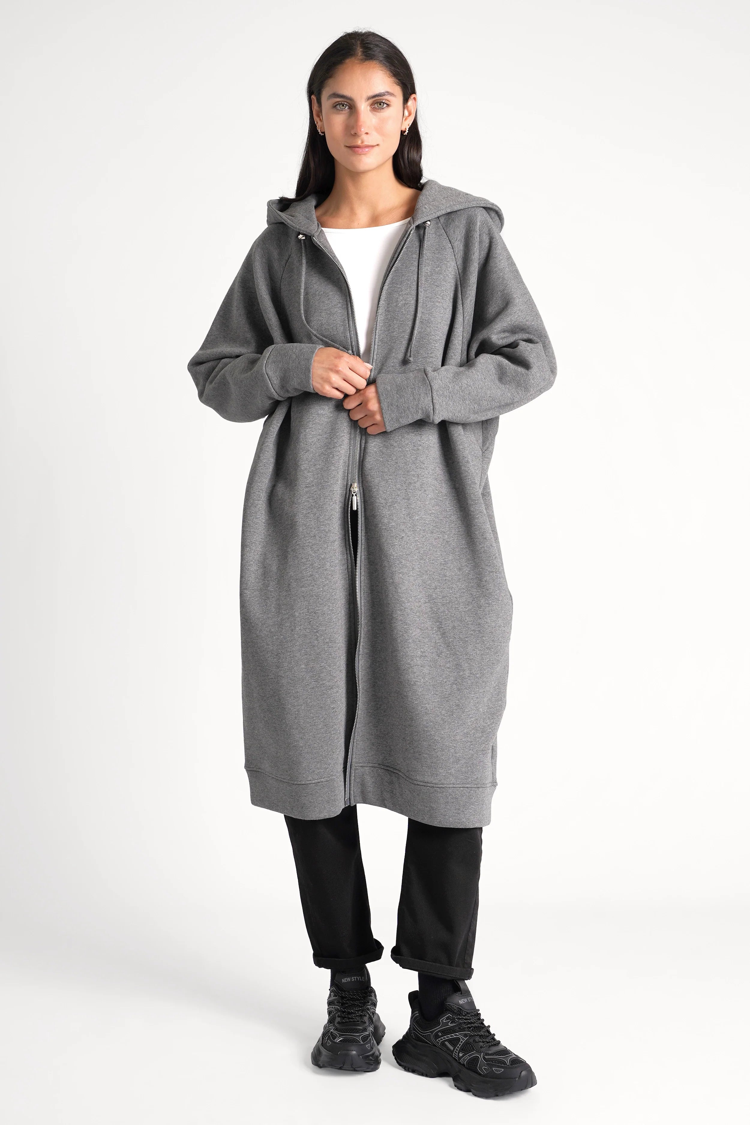 Komfort trifft Statement: Der Longzip-Hoodie aus weichem Baumwoll-Sweat hat eine gebürstete Innenseite und einen Zweiweg-Reißverschluss für variable Trageoptionen. Hinten setzt das aufgenähte Logo-Patch mit offenen Kanten ein markantes Detail.