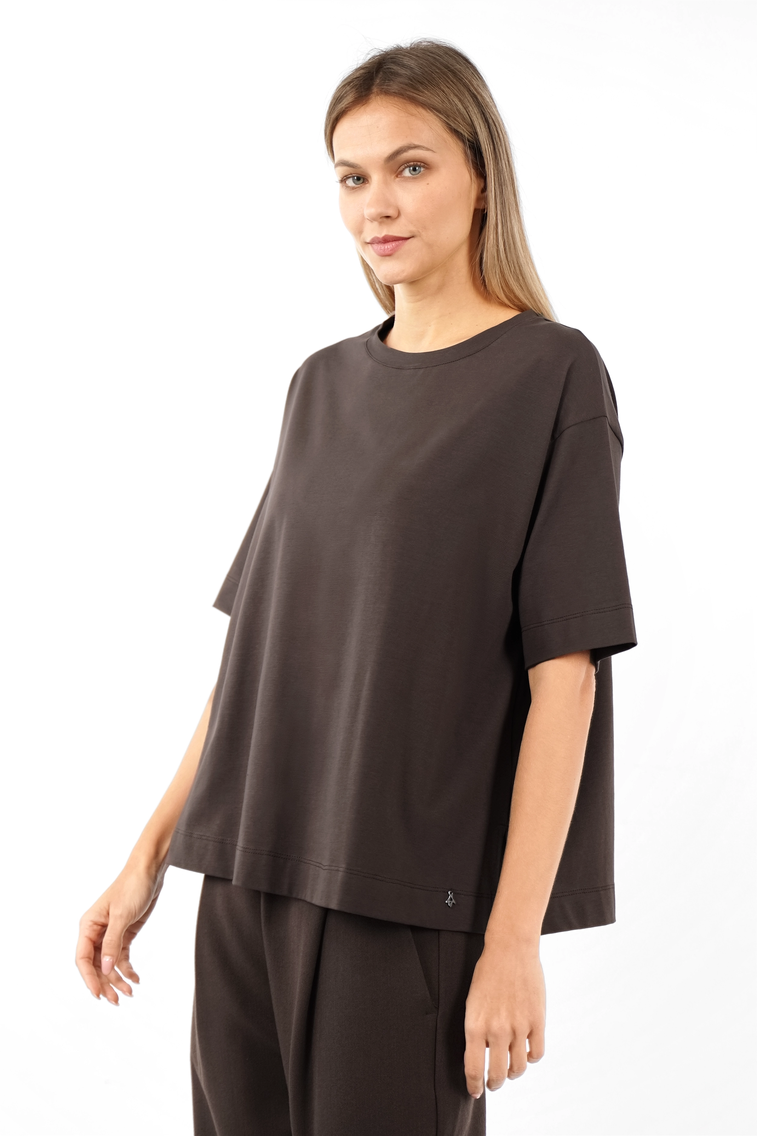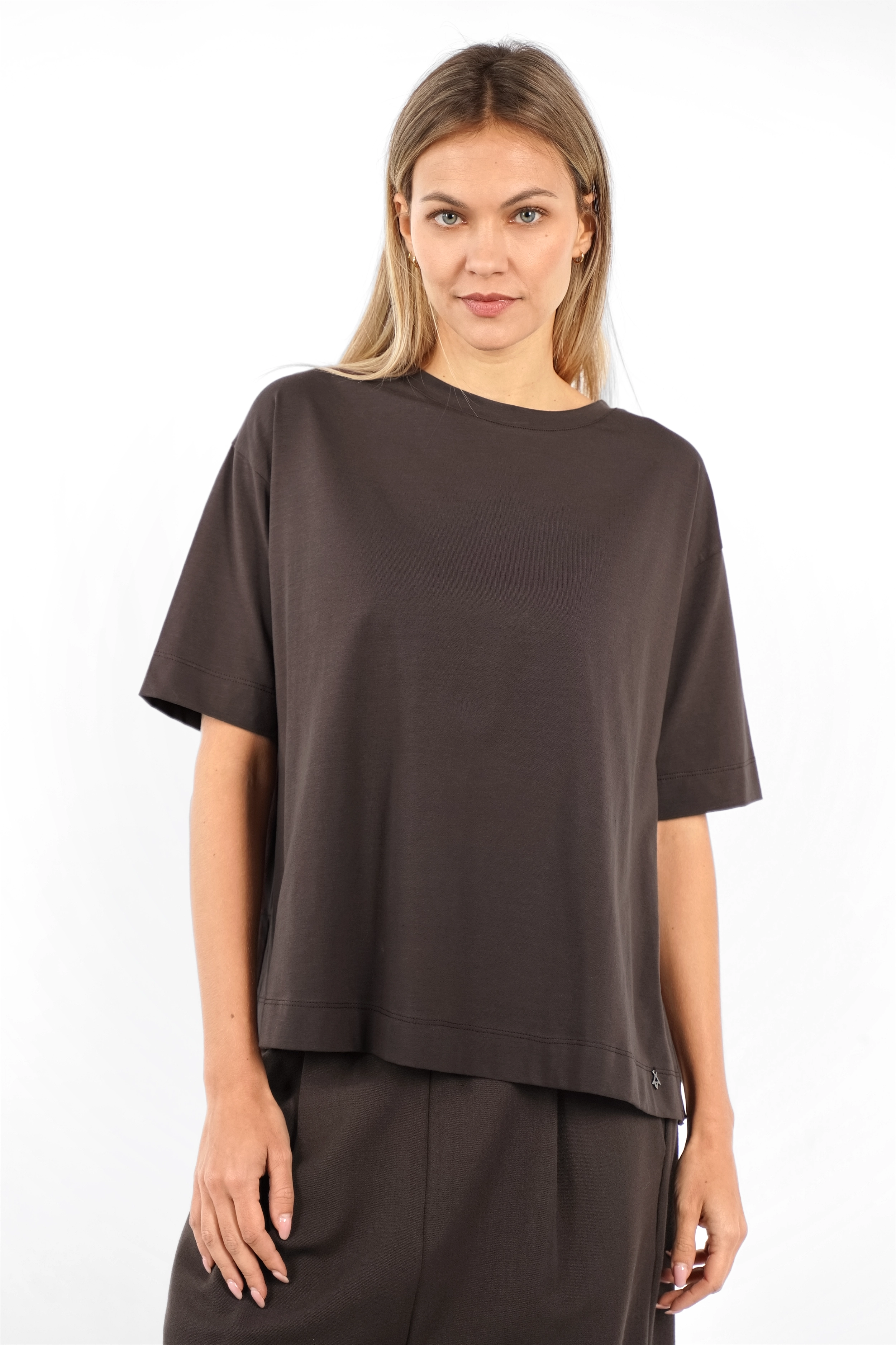 Bewährter Favorit: Shirt aus elastischem Baumwolljersey – weich im Griff, angenehm zu tragen und formstabil auch nach vielen Wäschen. Die leicht kastige Passform, überschnittenen Schultern und feinen Seitenschlitze verleihen ihm eine moderne, entspannte Note.