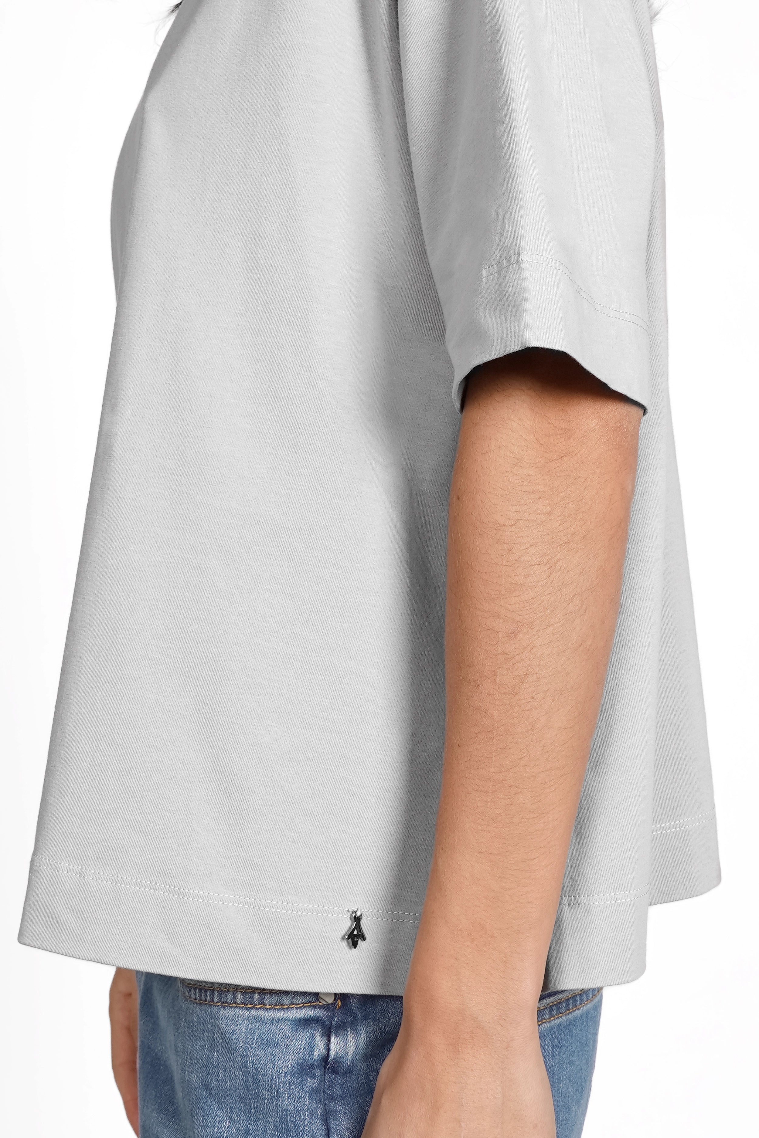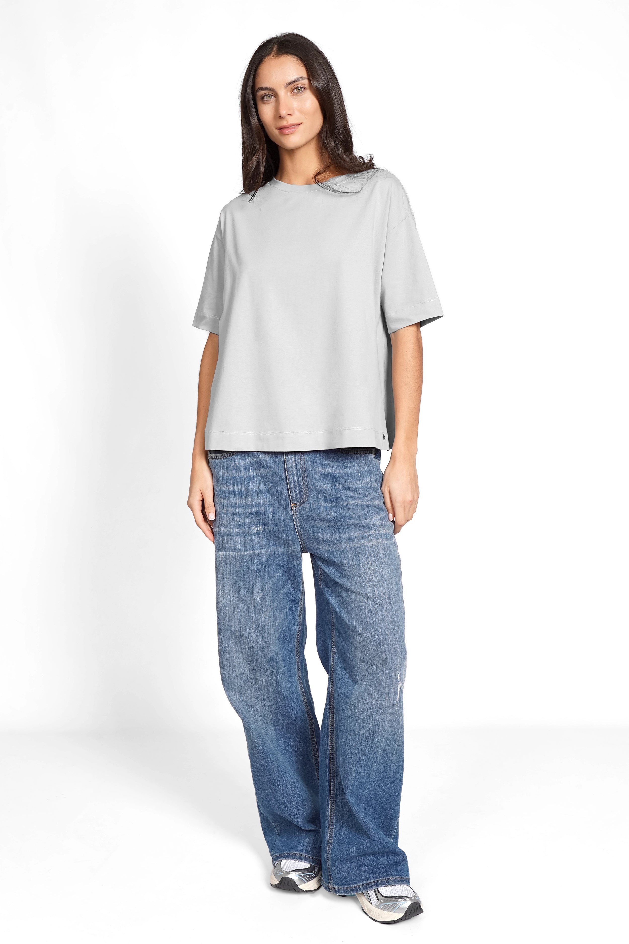 Bewährter Favorit: Shirt aus elastischem Baumwolljersey – weich im Griff, angenehm zu tragen und formstabil auch nach vielen Wäschen. Die leicht kastige Passform, überschnittenen Schultern und feinen Seitenschlitze verleihen ihm eine moderne, entspannte Note.