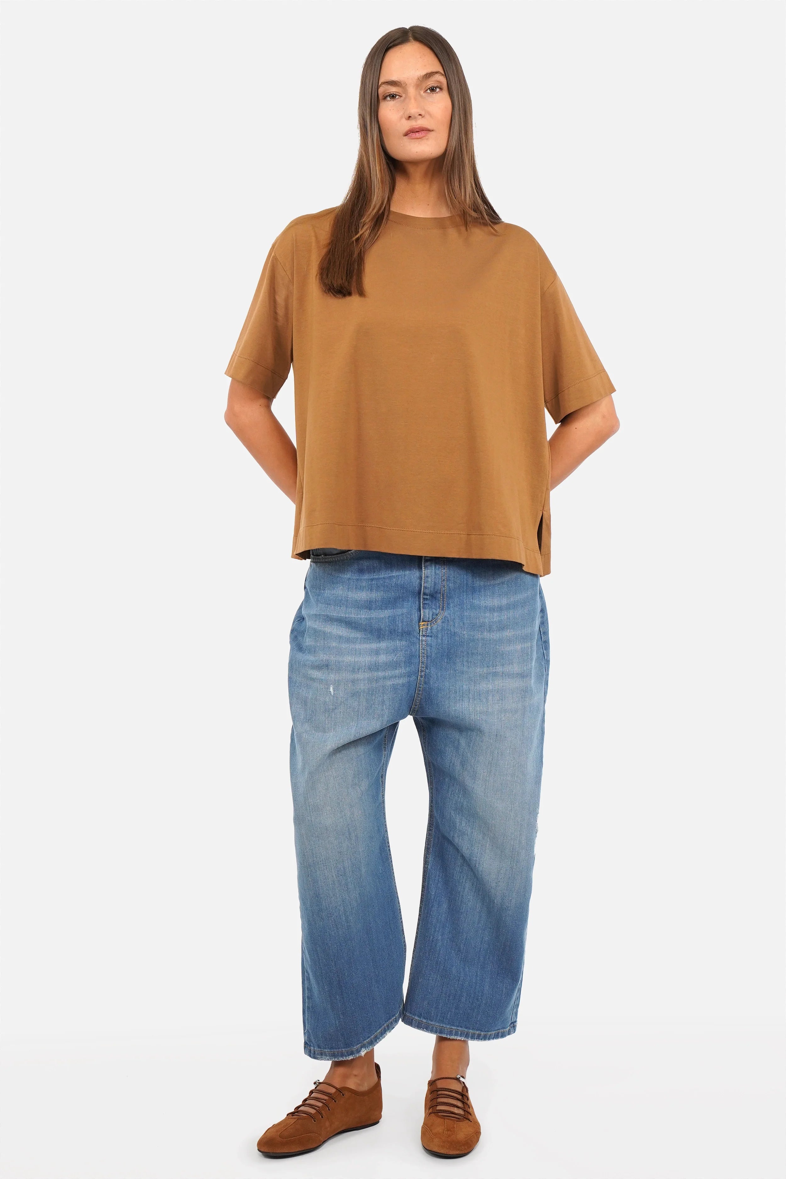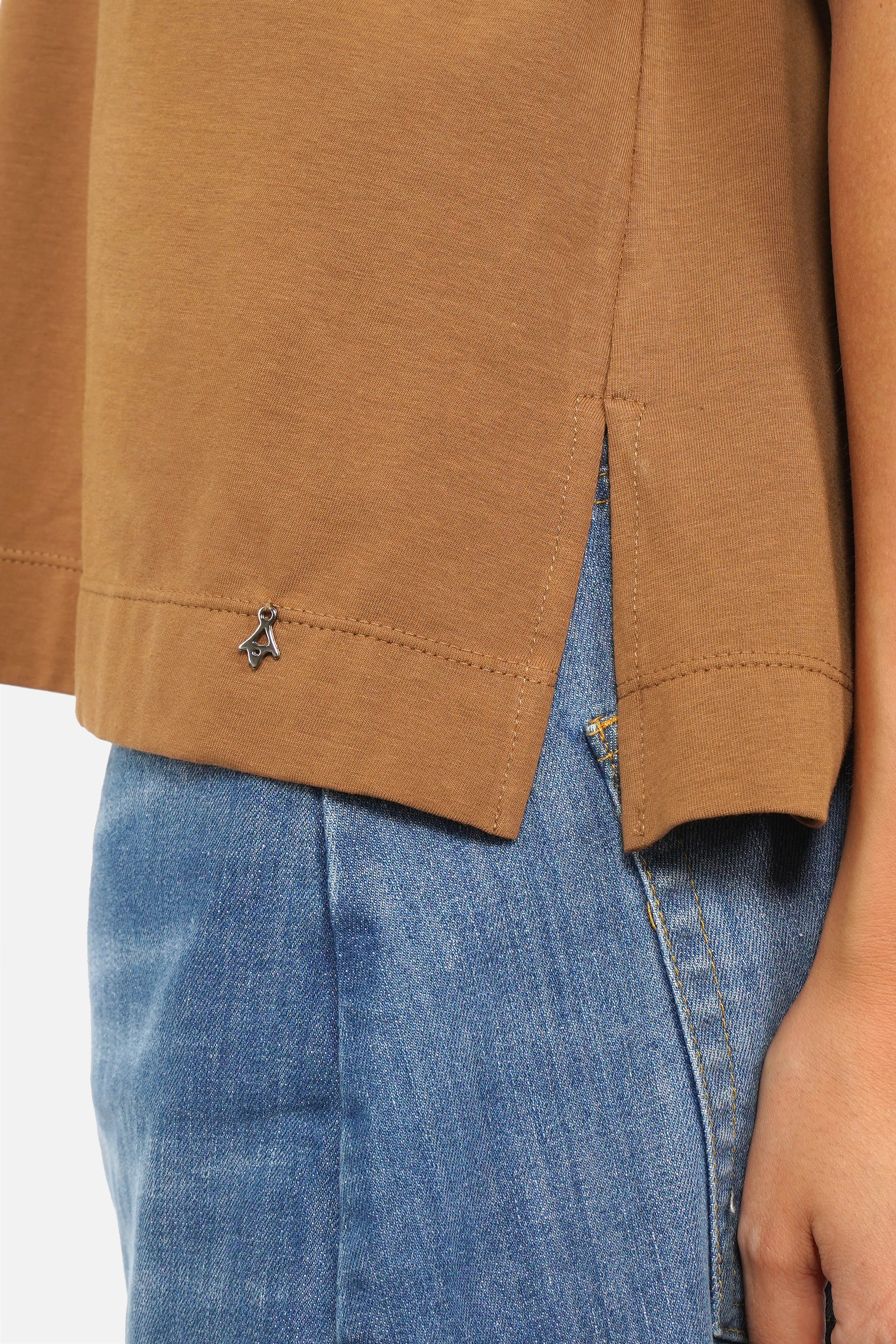 Bewährter Favorit: Shirt aus elastischem Baumwolljersey – weich im Griff, angenehm zu tragen und formstabil auch nach vielen Wäschen. Die leicht kastige Passform, überschnittenen Schultern und feinen Seitenschlitze verleihen ihm eine moderne, entspannte Note.