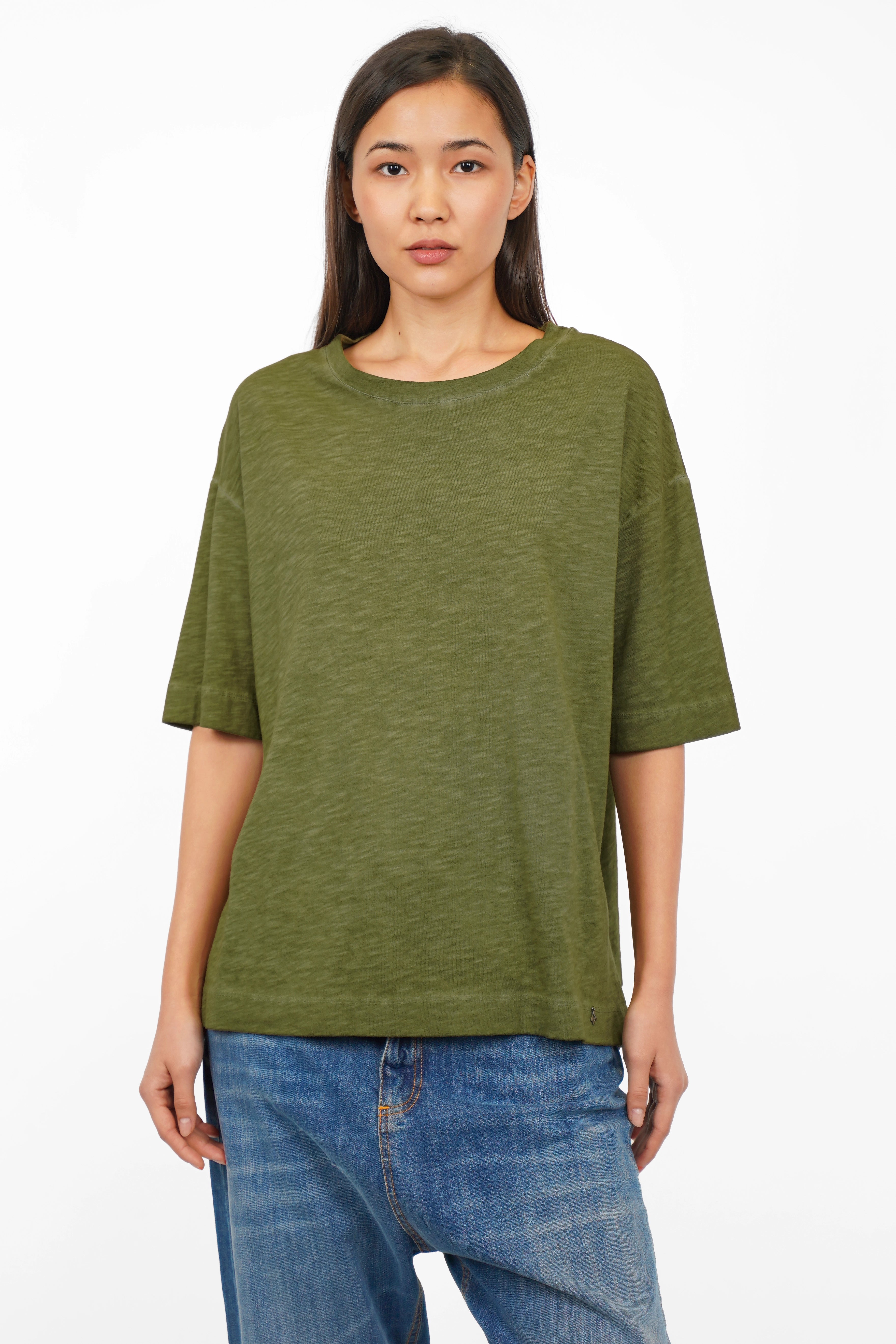 Markante Silhouette trifft auf individuelle Färbung. Das Shirt aus cold-washed Baumwolle setzt mit seiner kastigen Passform, überschnittenen Schultern und seitlichen Schlitzen auf einen modernen, lässigen Look – jedes Stück ein Unikat.
