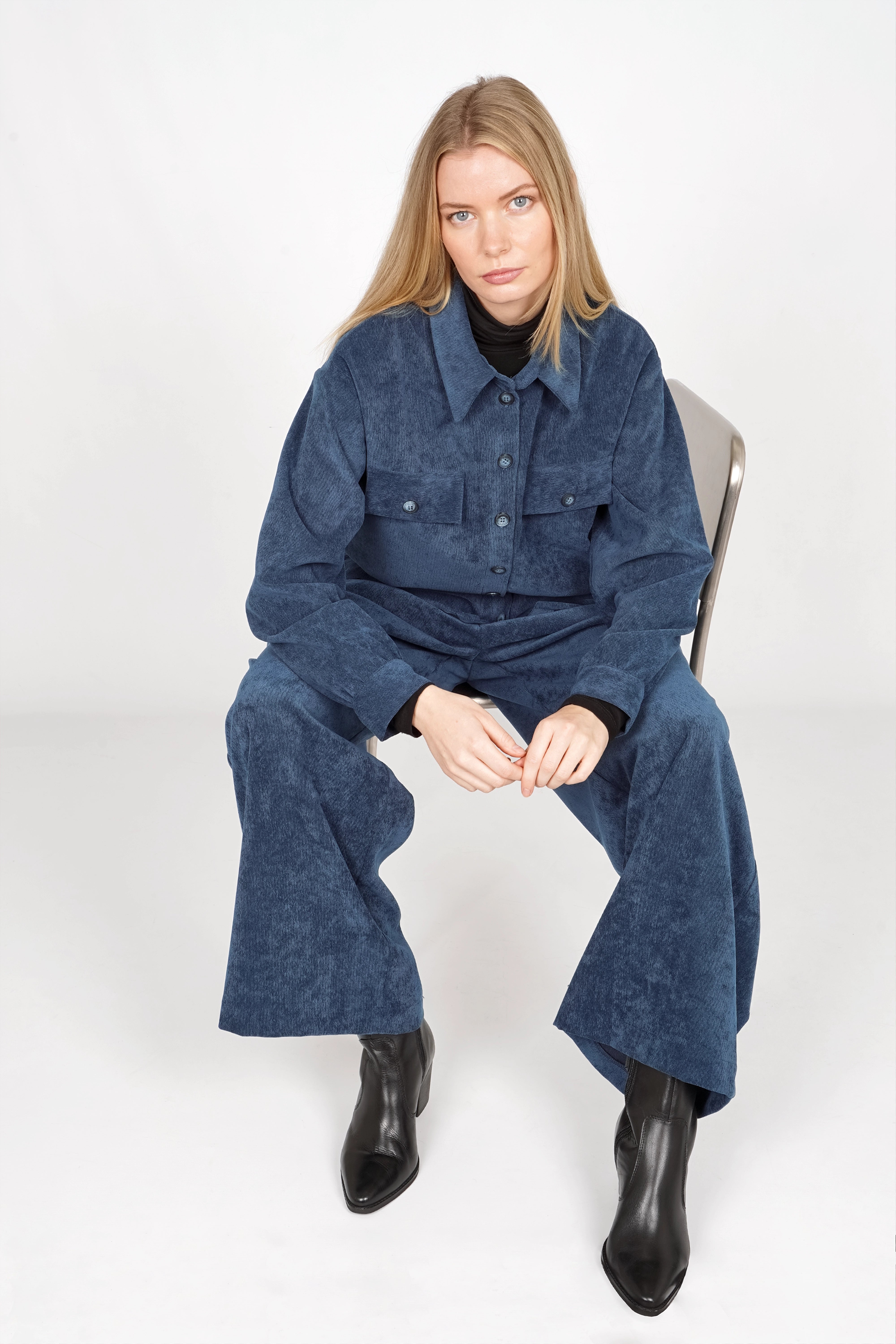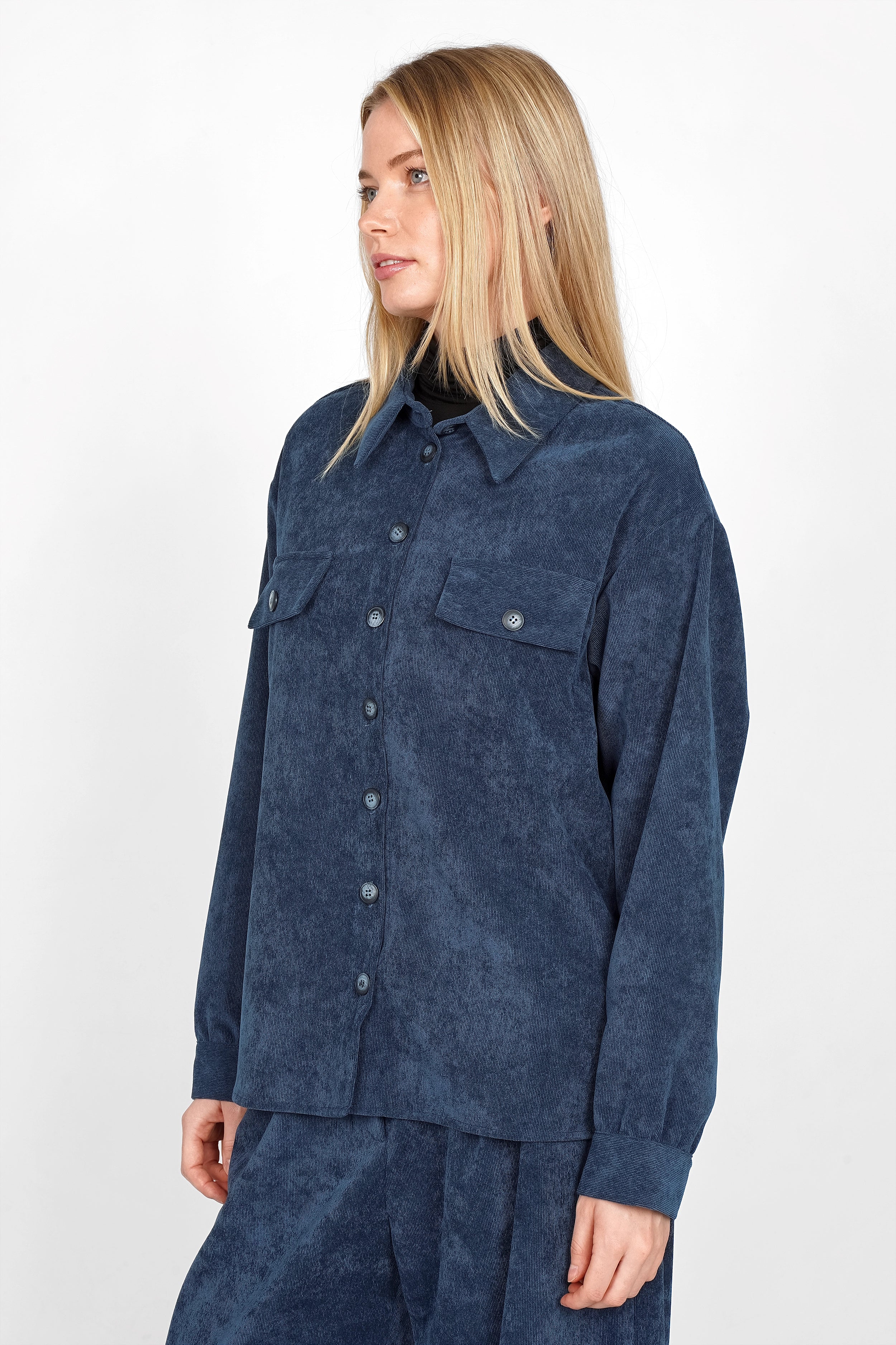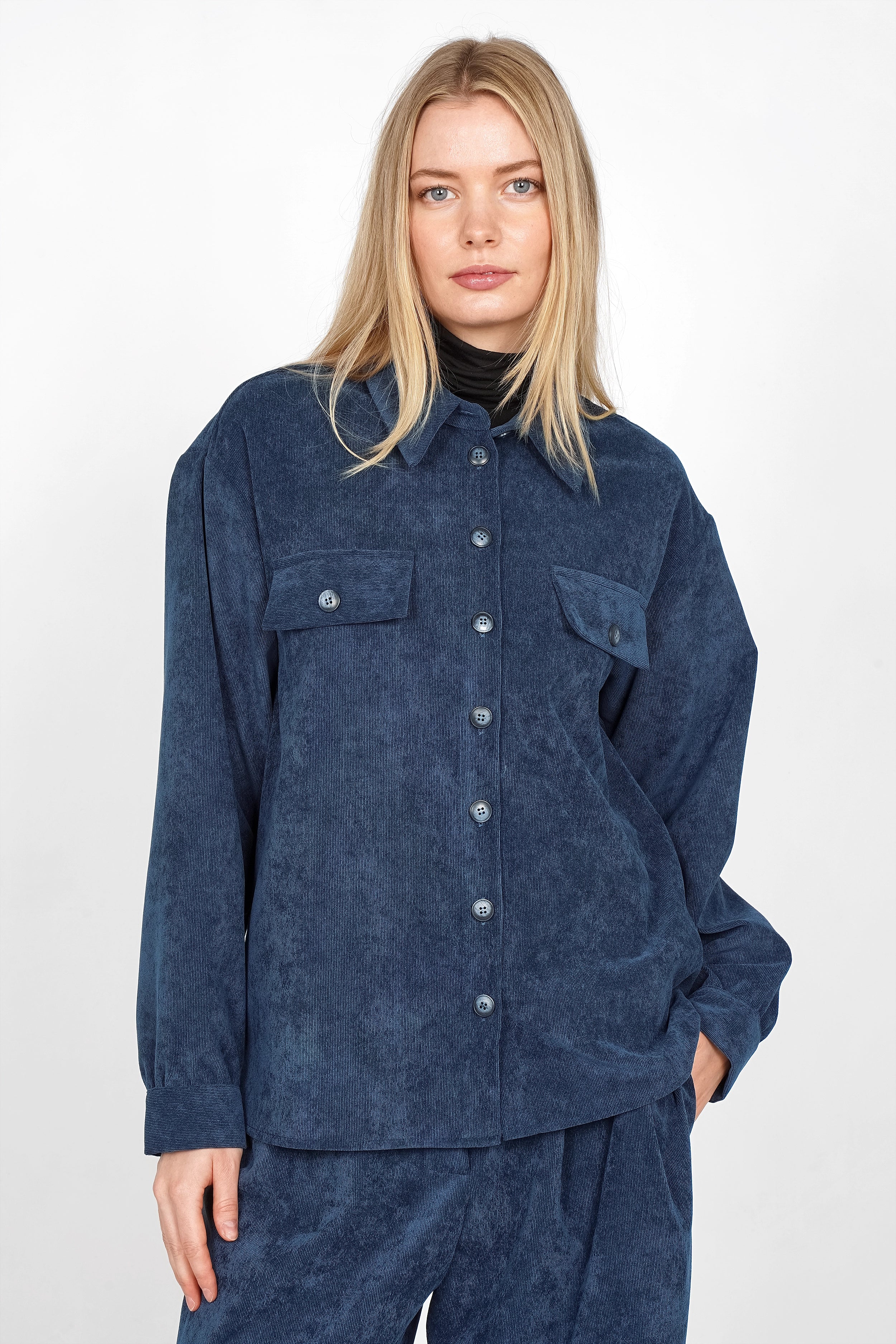 Ein locker geschnittenes Overshirt aus feinem Cord mit weichem Griff. Angedeutete Brusttaschen unterstreichen den reduzierten Charakter. Lässt sich solo tragen oder lässig als leichte Jacke kombinieren.