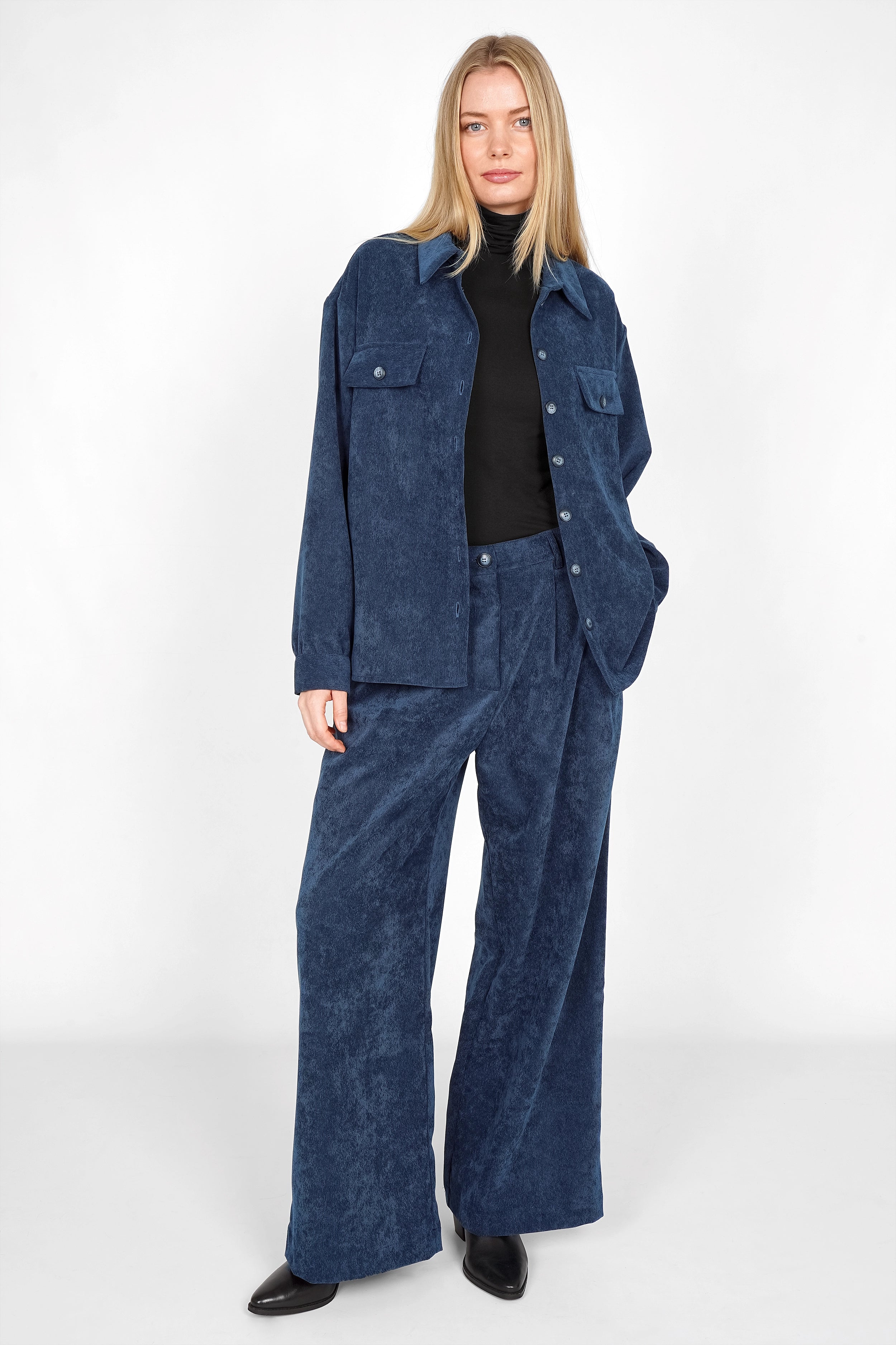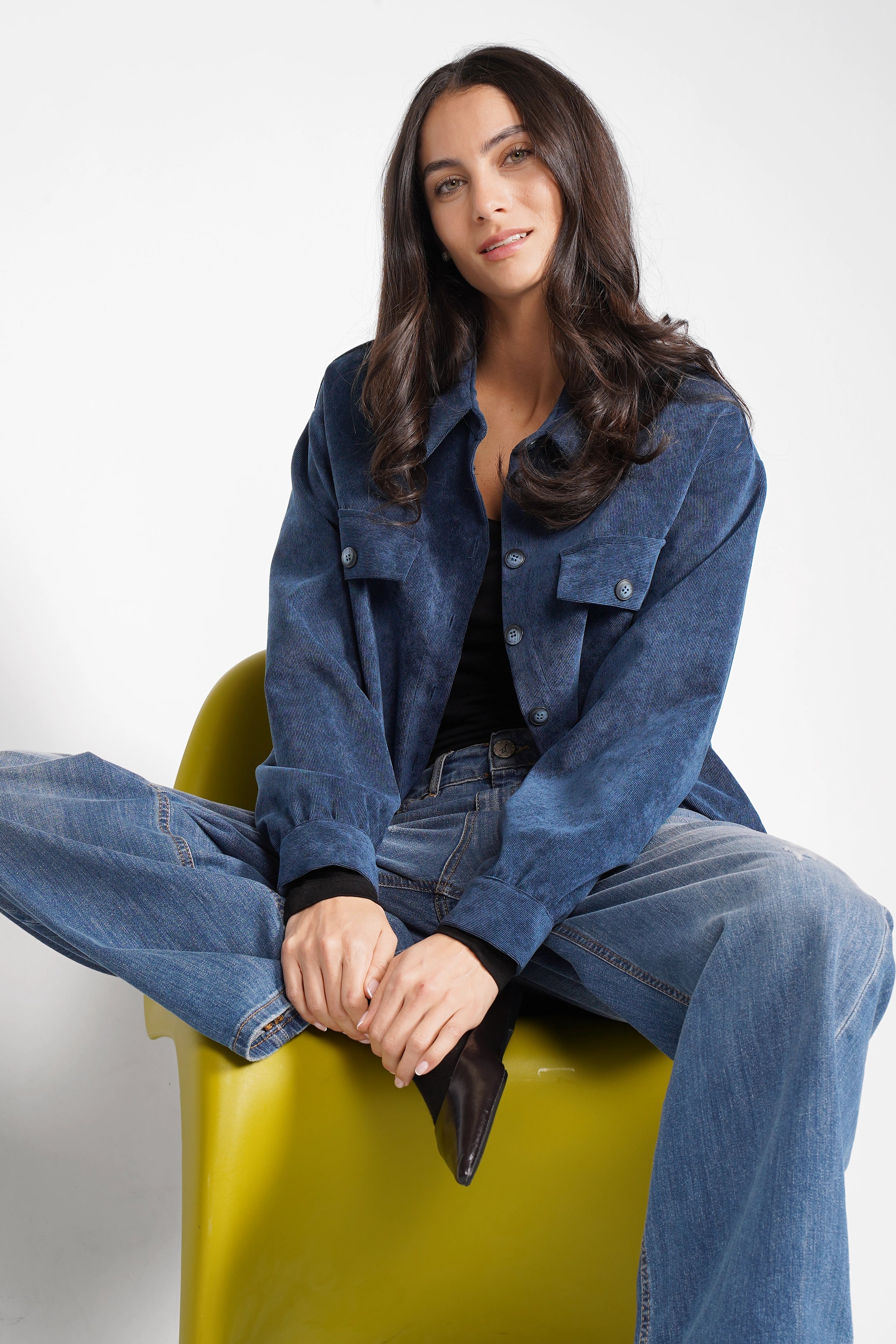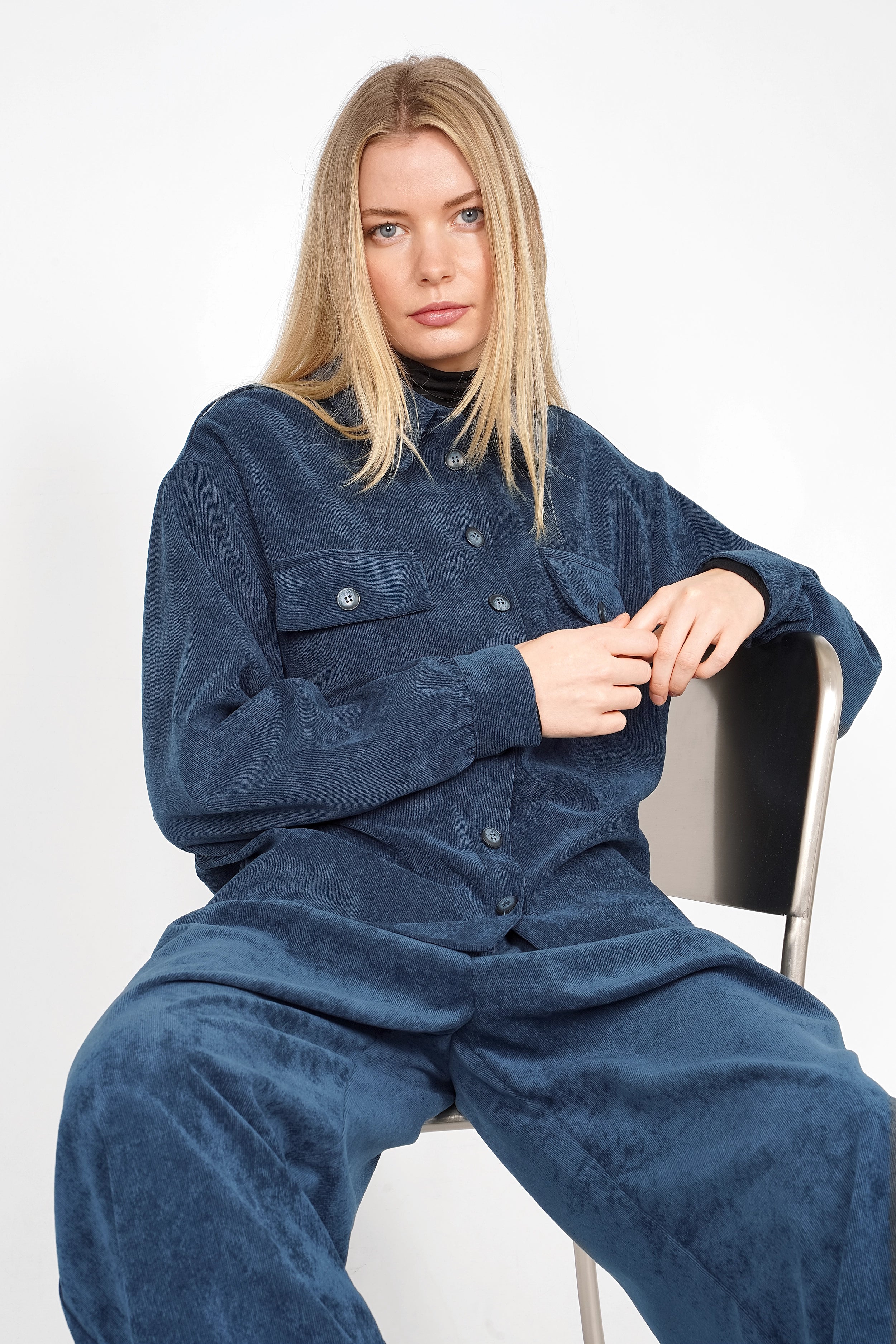 Ein locker geschnittenes Overshirt aus feinem Cord mit weichem Griff. Angedeutete Brusttaschen unterstreichen den reduzierten Charakter. Lässt sich solo tragen oder lässig als leichte Jacke kombinieren.