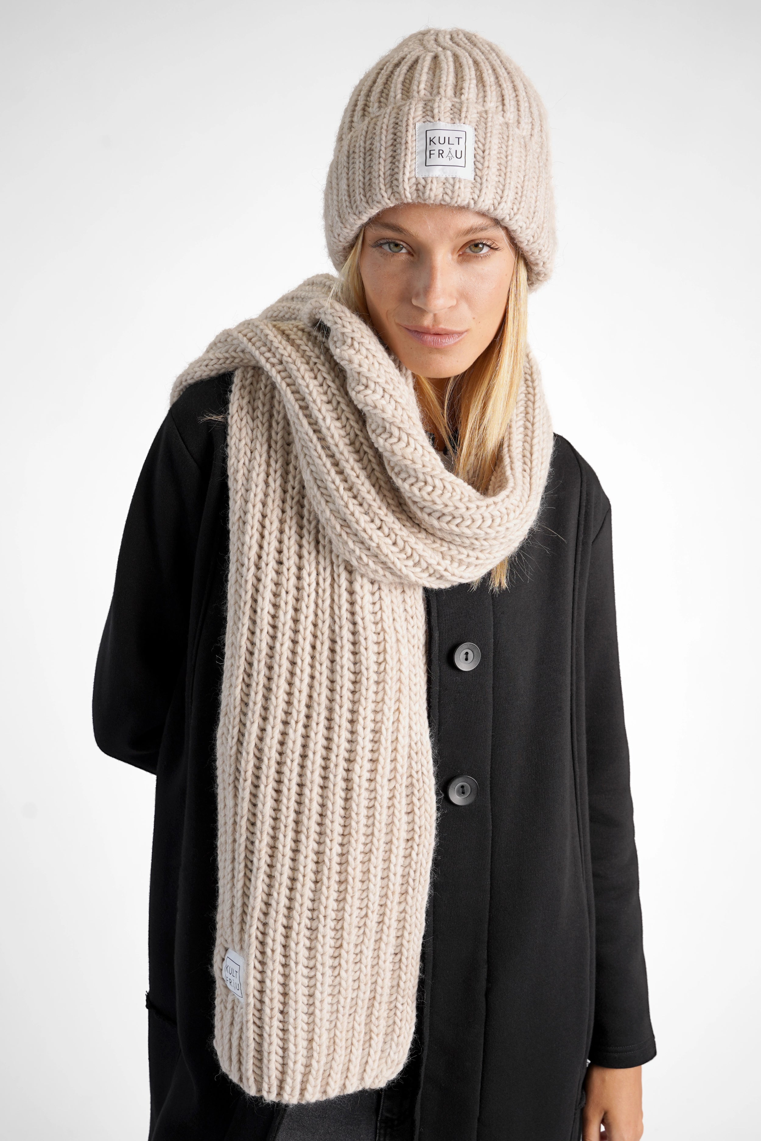 Dieser Schal ist aus einem weichen Wollmix im groben Rippstrick gefertigt. Mit seiner Länge lässt er sich vielseitig tragen – locker über die Schulter gelegt oder mehrfach gewickelt. Das Material fühlt sich angenehm auf der Haut an und kratzt nicht.