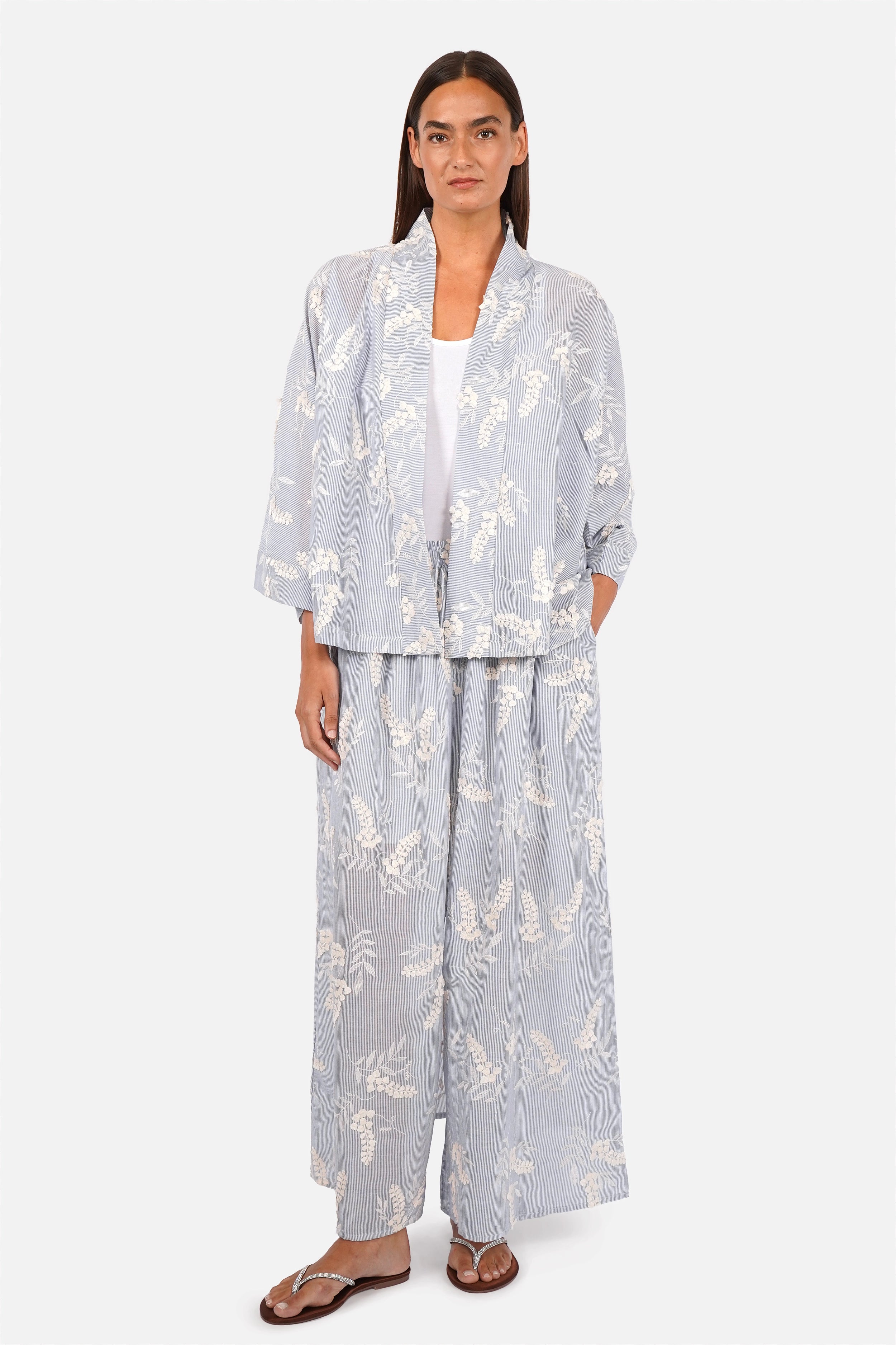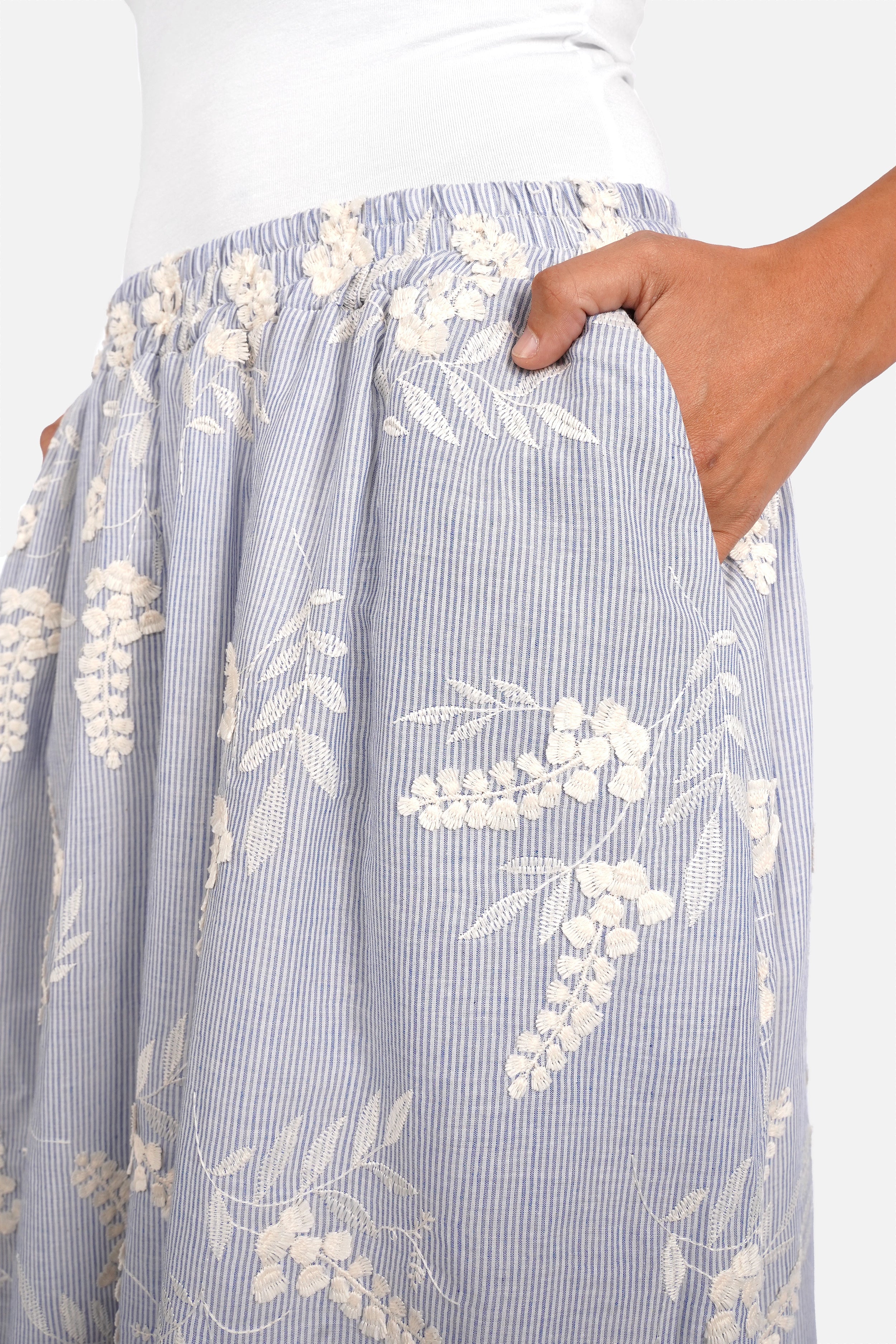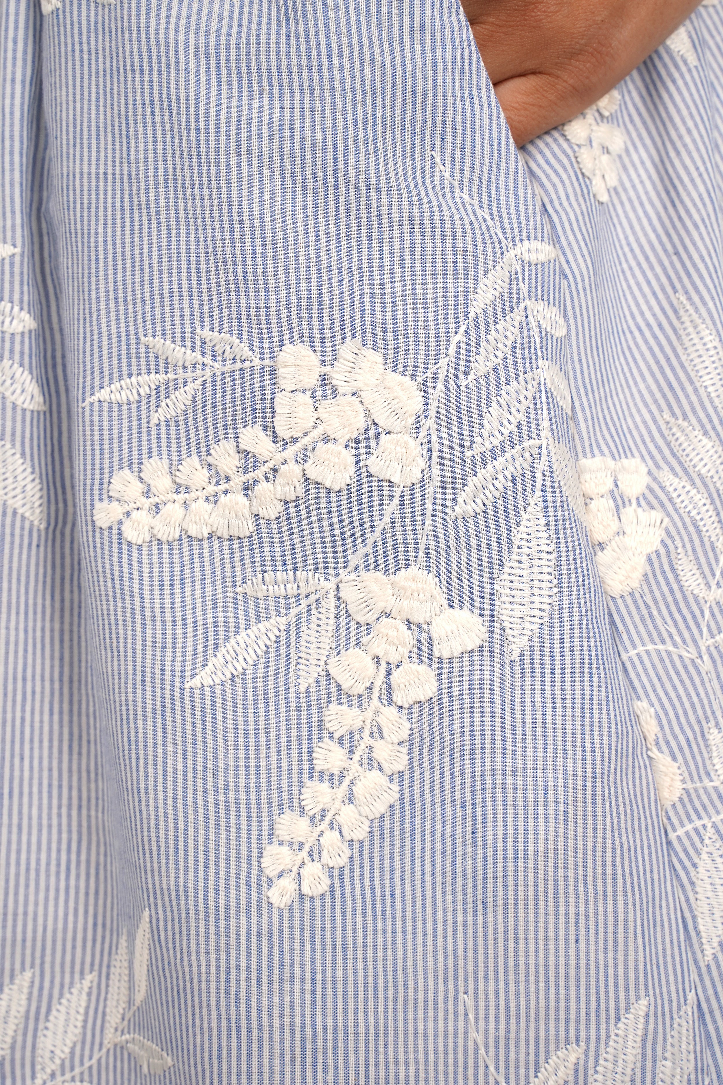 - Leichter, weicher Streifen-Baumwollstoff mit edler 3D-Stickerei
