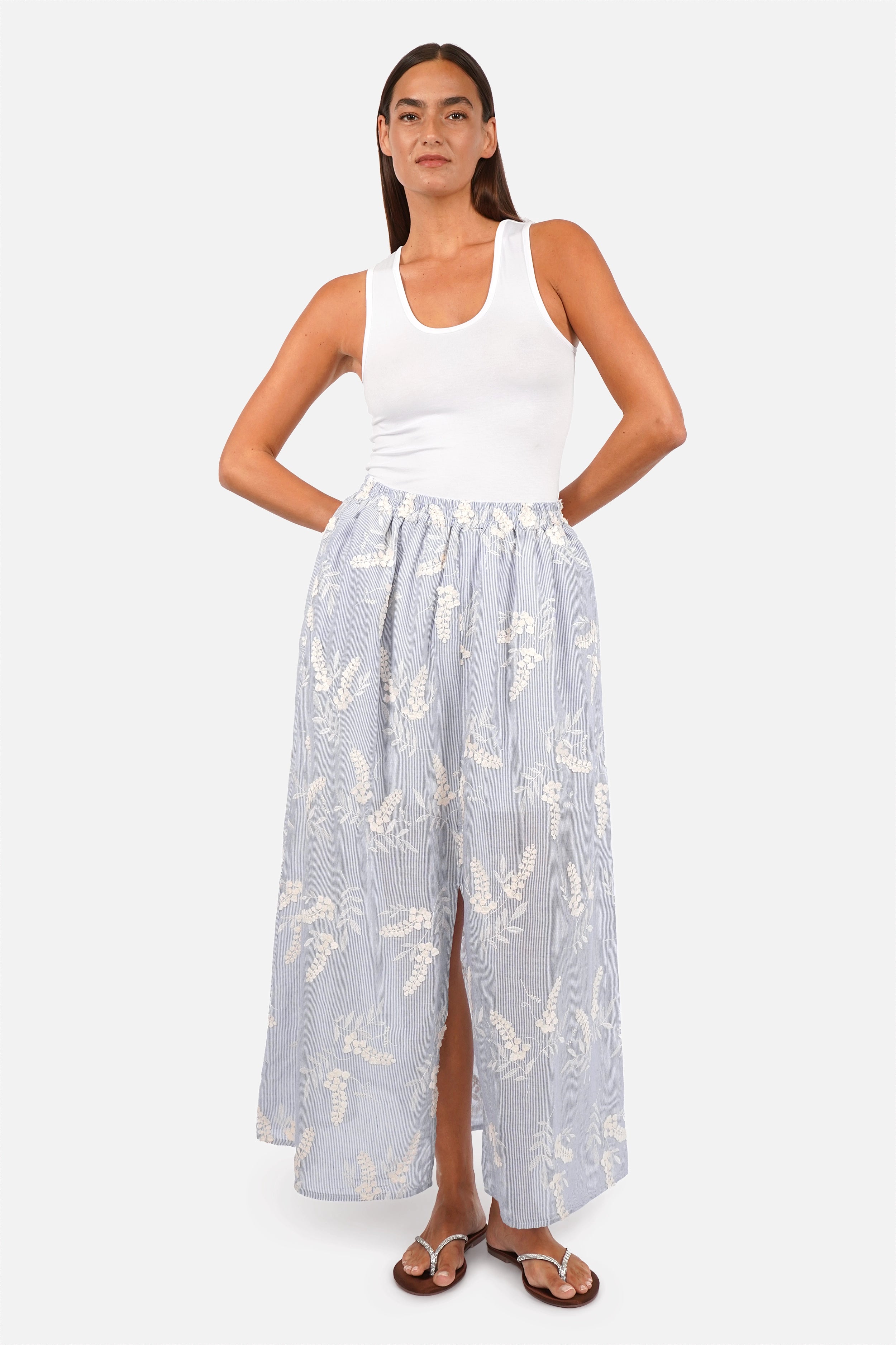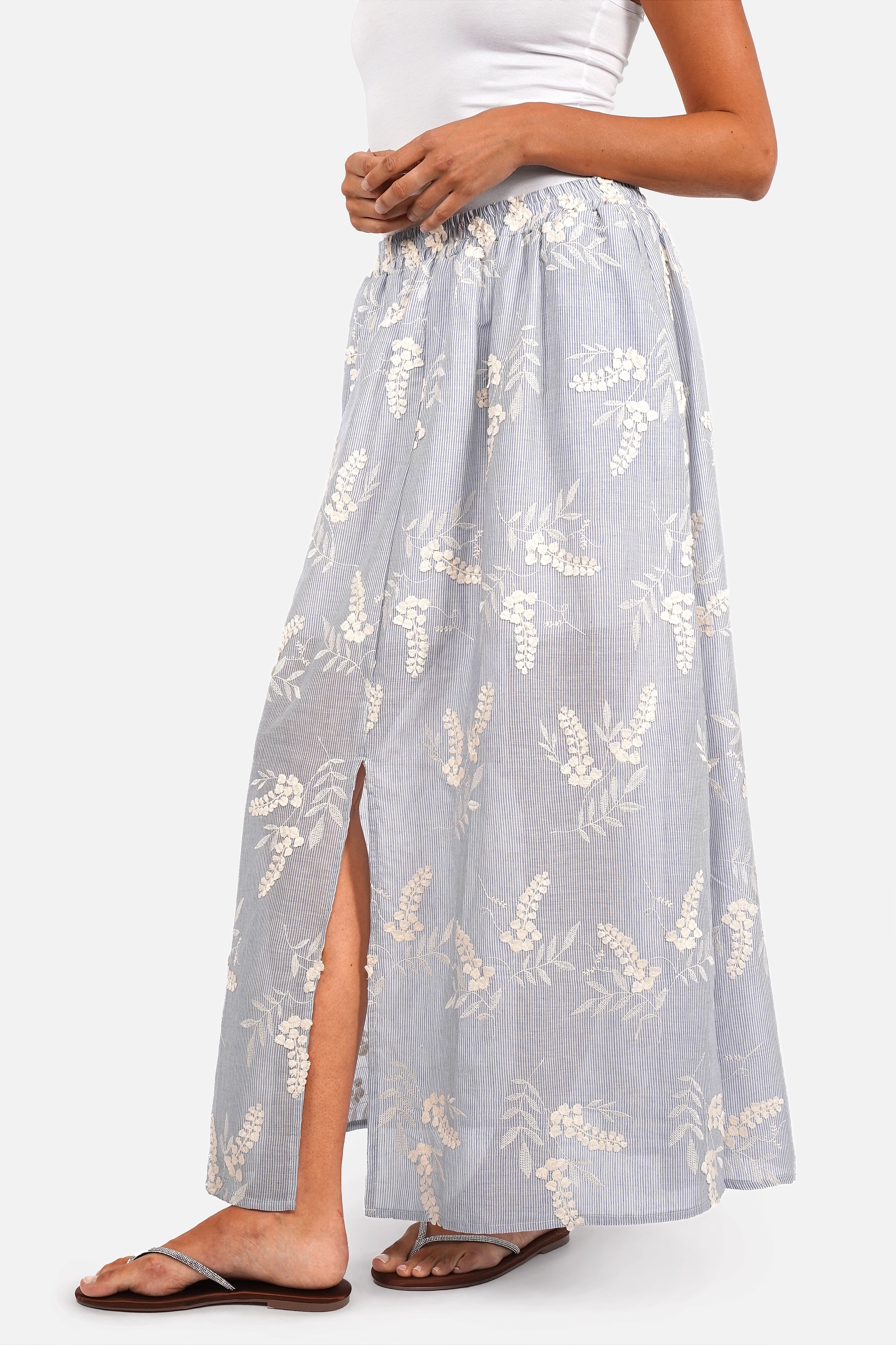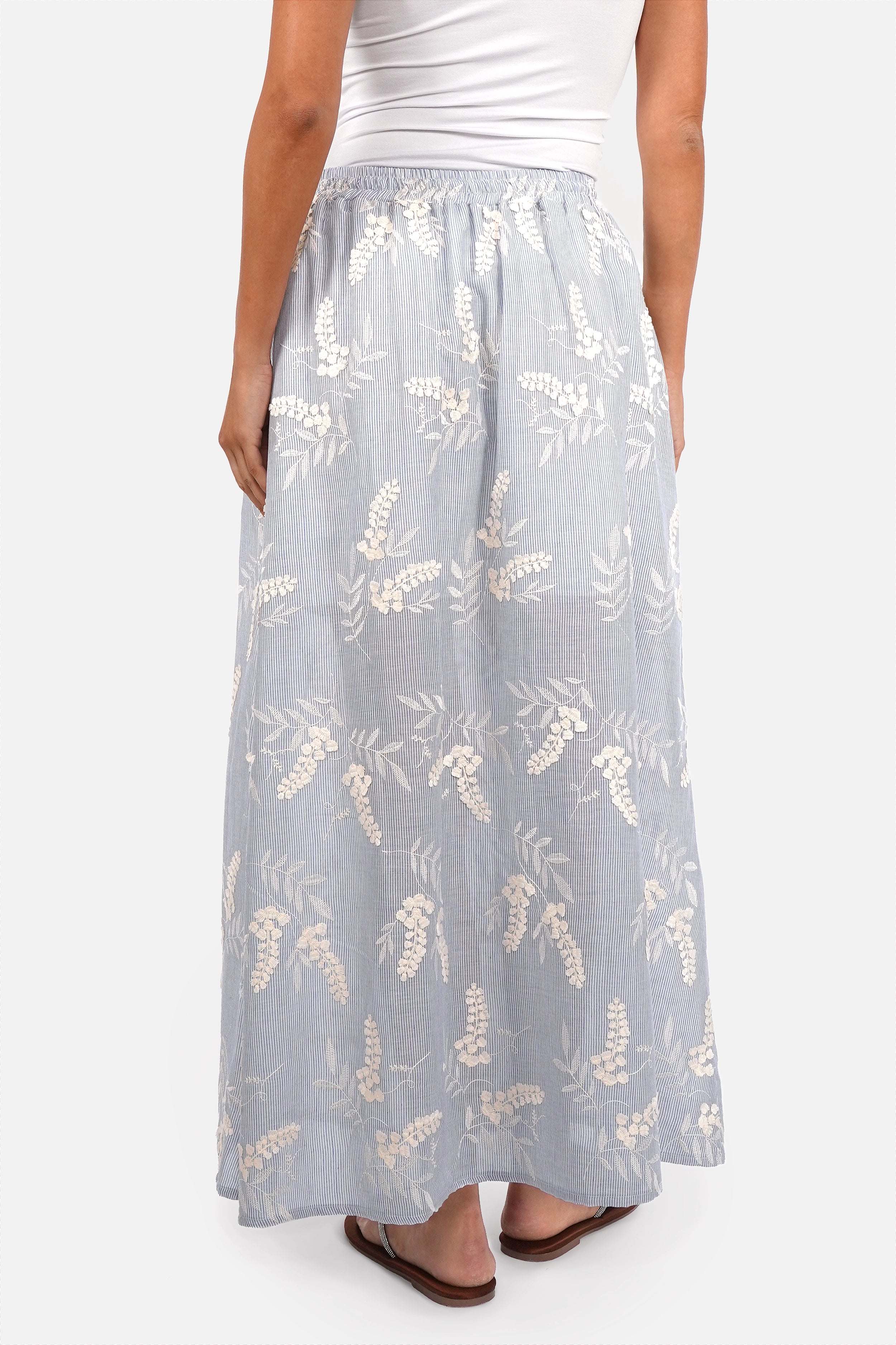 - Leichter, weicher Streifen-Baumwollstoff mit edler 3D-Stickerei